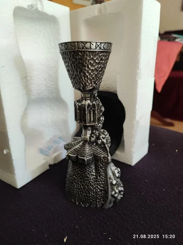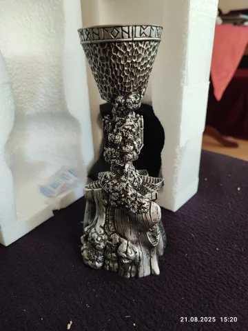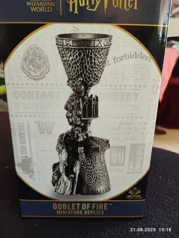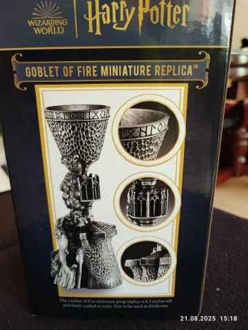 Toller Karton der zum Kelch gehört mit tolle gedruckten Bildern. Der Kelche war innen sehr stabil eingepackt. Der Kelch ist sehr massiv und schwer, tolles Material. Ich vermute Zinn ist mit verarbeitet. Der Kelch hat viele Interessante Details die in dem Film gar nicht richtig zusehen waren. Der Kelch hat eine gute Größe.